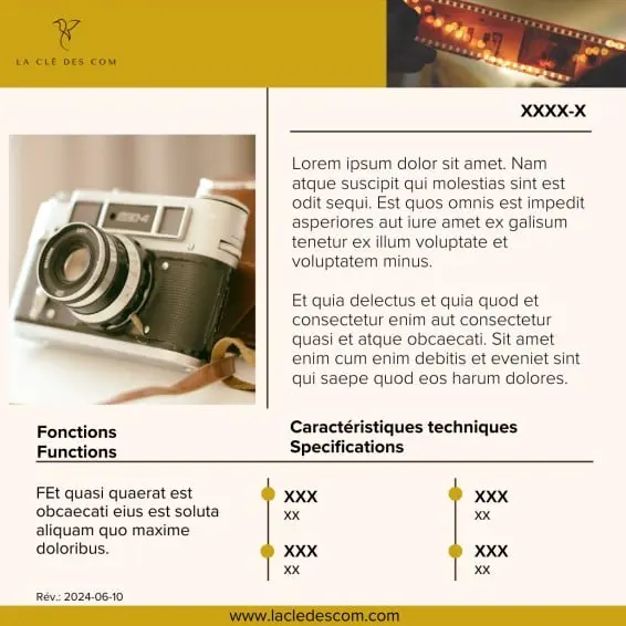 Pourquoi une fiche technique engageante est-elle essentielle? La clientèle va d’abord lire les points principaux (à quoi sert le produit, à quoi il ressemble, ses avantages, etc.). C’est pourquoi des informations précises et concises, et une mise en page aérée sont essentielles.